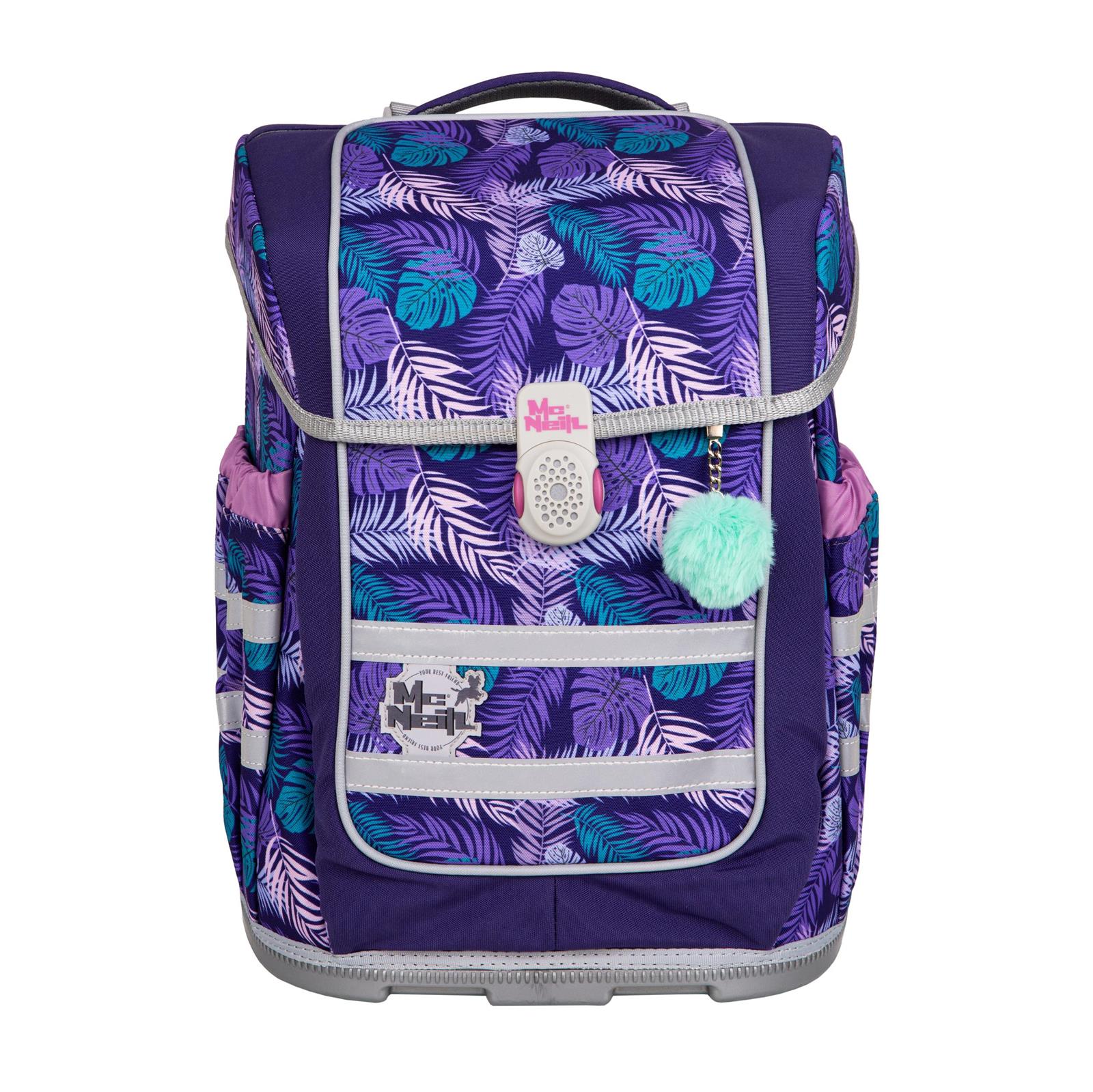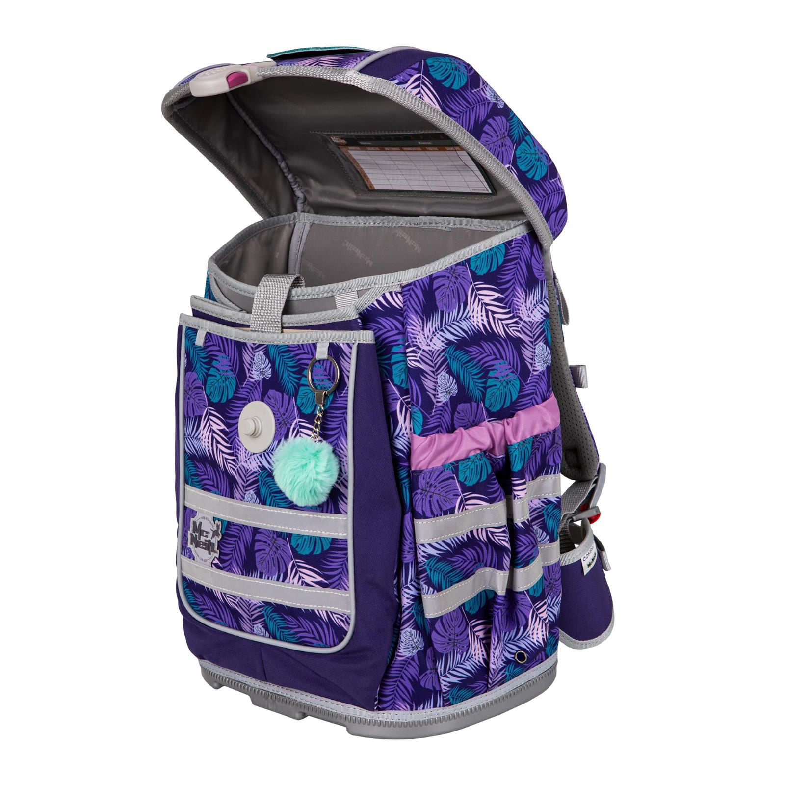 Der McNeill COMPACTO – Kollektion 2025- das Update zu dem Testsieger Complete. Mit seiner funktionellen und komfortabeln Innenaufteilung, 1 Bücherfach im Hauptfach, 2 Vortaschen mit Organizer. 2 Seitenfächer mit Gummizug für Trinkflasche, Schirm etc.. Alle Modelle Kollektion 2025 sind mit dem neuen ClickFlex Rückensystem, sowie dem reflektierenden Einhand-Magent Schloss ausgestattet. Die Schulterriemen mit Samtveloursbesatz sorgen für ein soften Tragekomfort. Mit Brust- und Beckengurt. Die reflektierenden Doppelstreifen sorgen für gute Sichtbarkeit im Straßenverkehr.