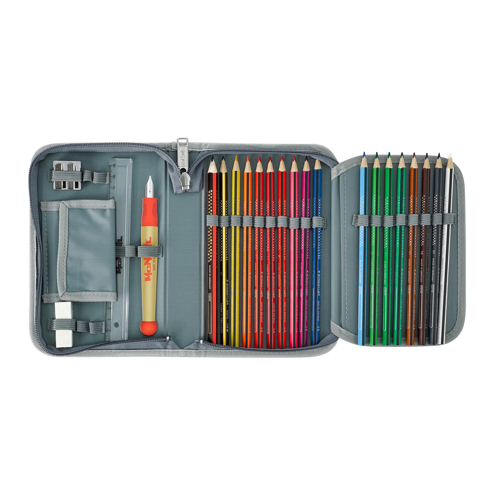 Das gefüllte McNeill Etui ist der perfekte Begleiter für die Schule. Das Etui ist mit vielen hochwertigen Stiften, einem Radiergummi und Anspitzer gefüllt. Das Etui lässt sich sicher verschließen und somit gut im Schulranzen transportieren.
