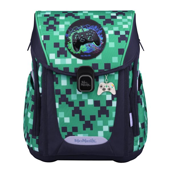 Der Primo Game Zone Schulranzen verbindet Funktionalität und Stil mit einem grünen Gamer- Design. Er enthält zwei coole McAddys, eine blaue Brotdose und Trinkflasche. Das Design für Gamer die Aktion lieben.