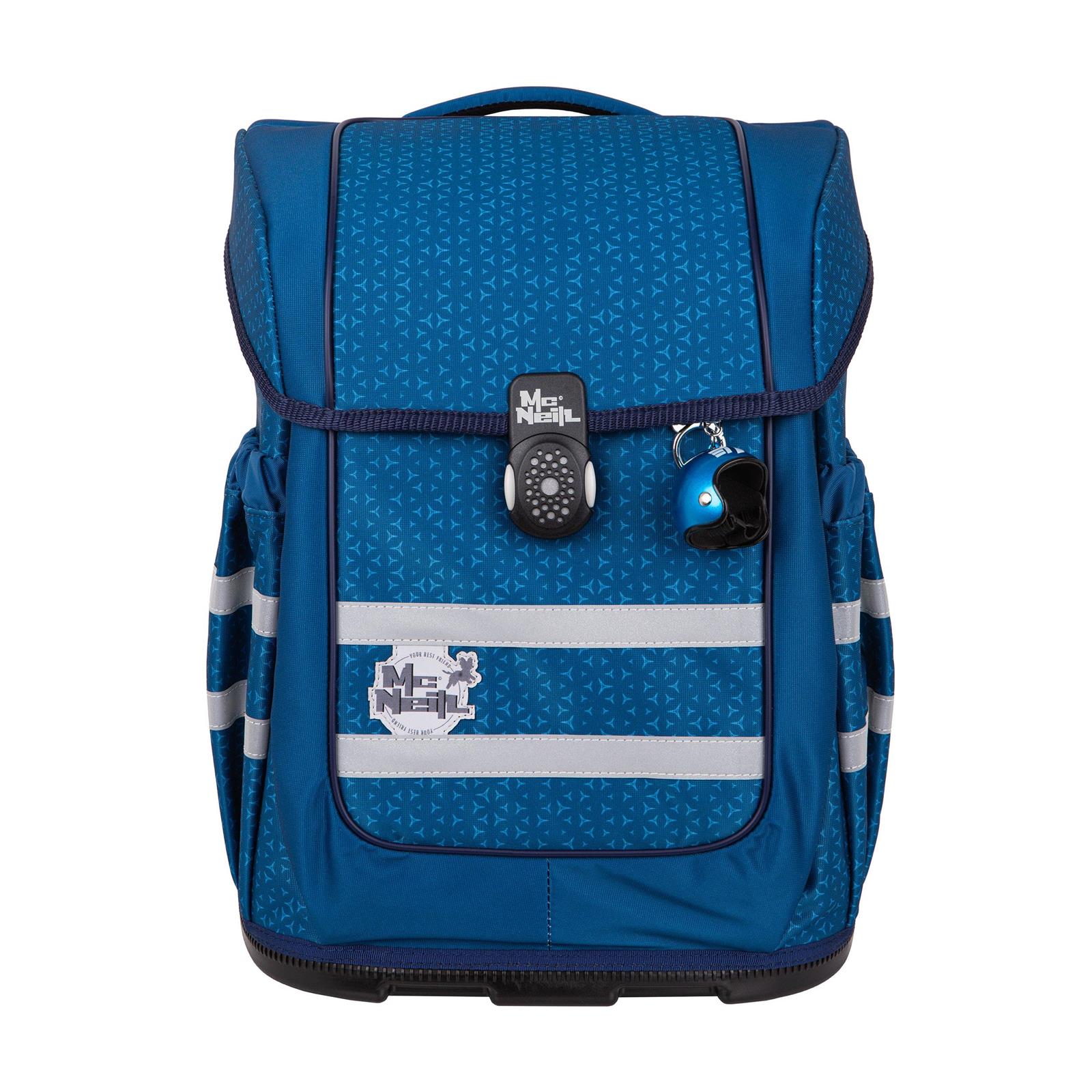 Der McNeill COMPACTO – Kollektion 2026- das Update zu dem Testsieger Complete. Mit seiner funktionellen und komfortabeln Innenaufteilung, 1 Bücherfach im Hauptfach, 2 Vortaschen mit Organizer. 2 Seitenfächer mit Gummizug für Trinkflasche, Schirm etc.. Alle Modelle Kollektion 2026 sind mit dem neuen ClickFlex Rückensystem, sowie dem reflektierenden Einhand-Magent Schloss ausgestattet. Die Schulterriemen mit Samtveloursbesatz sorgen für ein soften Tragekomfort. Mit Brust- und Beckengurt. Die reflektierenden Doppelstreifen sorgen für gute Sichtbarkeit im Straßenverkehr.